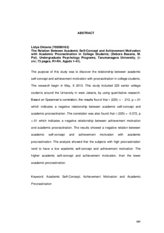 Oktavia, Lidya (2013) Hubungan Konsep Diri Akademik Dan Motivasi Berprestasi Dengan Prokrastinasi Akademik Pada Mahasiswa. Skripsi thesis, Universitas Tarumanagara.