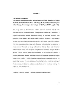 Sumiati, Yeni (2013) Hubungan Antara Kematangan Emosi Dengan Perilaku Konsumtif Pada Mahasiswa. Skripsi thesis, Universitas Tarumanagara.