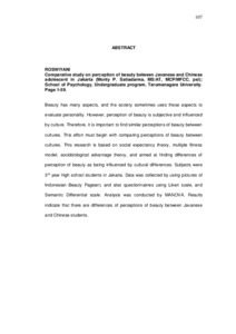 Beauty has many aspects, and the society sometimes uses these aspects to evaluate personality. However, perception of beauty is subjective and influenced by culture. Therefore, it is important to find similar perceptions of beauty between cultures. This effort must begin with comparing perceptions of beauty between cultures. This research is based on social expectancy theory, multiple fitness model, sociobiological advantage theory, and aimed at finding differences of perception of beauty as being influenced by cultural differences. Subjects were 3rd year high school students in Jakarta. Data was collected by using pictures of Indonesian Beauty Pageant, and also questionnairres using Likert scale, and Semantic Differential scale. Analysis was conducted by MANOVA. Results indicate that there are differences of perceptions of beauty between Javanese and Chinese students.