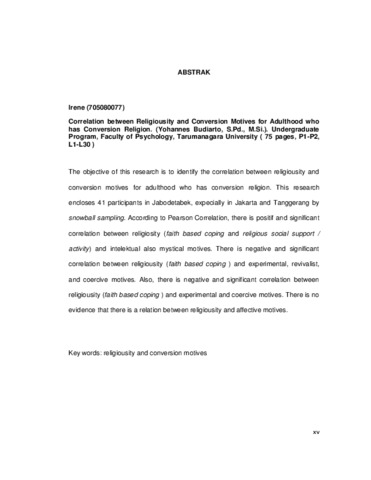 Irene, Irene (2013) Hubungan Religiusitas Dengan Motif Konversi Agama Pada Dewasa Awal. Skripsi thesis, Universitas Tarumanagara.