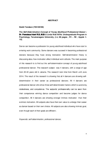 Tandean, Deddi (2014) Gambaran Self-Determination Pada Penari Profesional Dewasa Muda. Skripsi thesis, Universitas Tarumanagara.