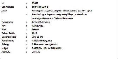 Paimanta, Edward (2010) Penerapan Target Costing dan Kaizen Costing pada PT. Cipta Kreasindo Gracia Guna Mengurangi Biaya Produksi dan Meningkatkan Mutu. Skripsi thesis, Universitas Tarumanagara.