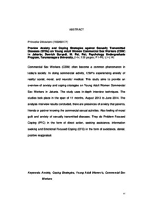 Oktaviani, Princelia (2014) Gambaran Kecemasan Dan Strategi Coping Pada Wanita Dewasa Awal Pekerja Seksual Komersial (PSK) Di Jakarta. Skripsi thesis, Universitas Tarumanagara.